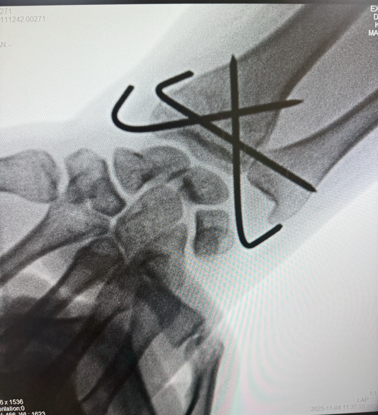 Distal end radius fracture of young patient operated with Closed reduction and K wire fixation